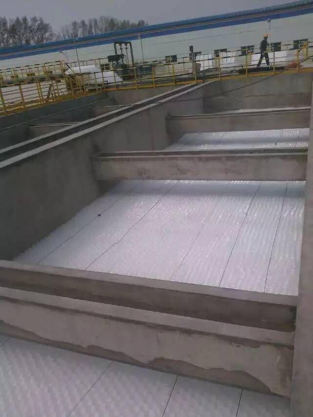 斜管填料是利用有用容積必定的條件下,添加堆積面積,可使去除率進(jìn)步,把多層沉淀底板做成必定傾斜度,并進(jìn)行橫向分隔,形成管狀(矩形或六角形),斜管與水平面成60°夾角,放置于沉淀中,水從下向上活動,顆粒則沉于斜管底部,當(dāng)顆粒累積到達(dá)必定程度時(shí),便主動滑下,從而使污水中的固體顆粒得以堆積于預(yù)訂的積泥區(qū),到達(dá)污水凈化的目的,當(dāng)斜管上部呈現(xiàn)青時(shí)需要及時(shí)進(jìn)行清理,斜管頂上已成長的青可用消防水嘴以壓力100kPa進(jìn)行鏟除,壓力勿過高。定期沖洗斜管孔徑里的污泥。